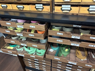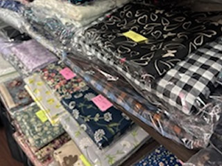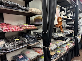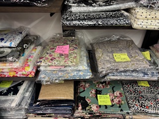 糸や針、コンシールファスナーなどの付属品や可愛い生地、ステキな生地もあります。